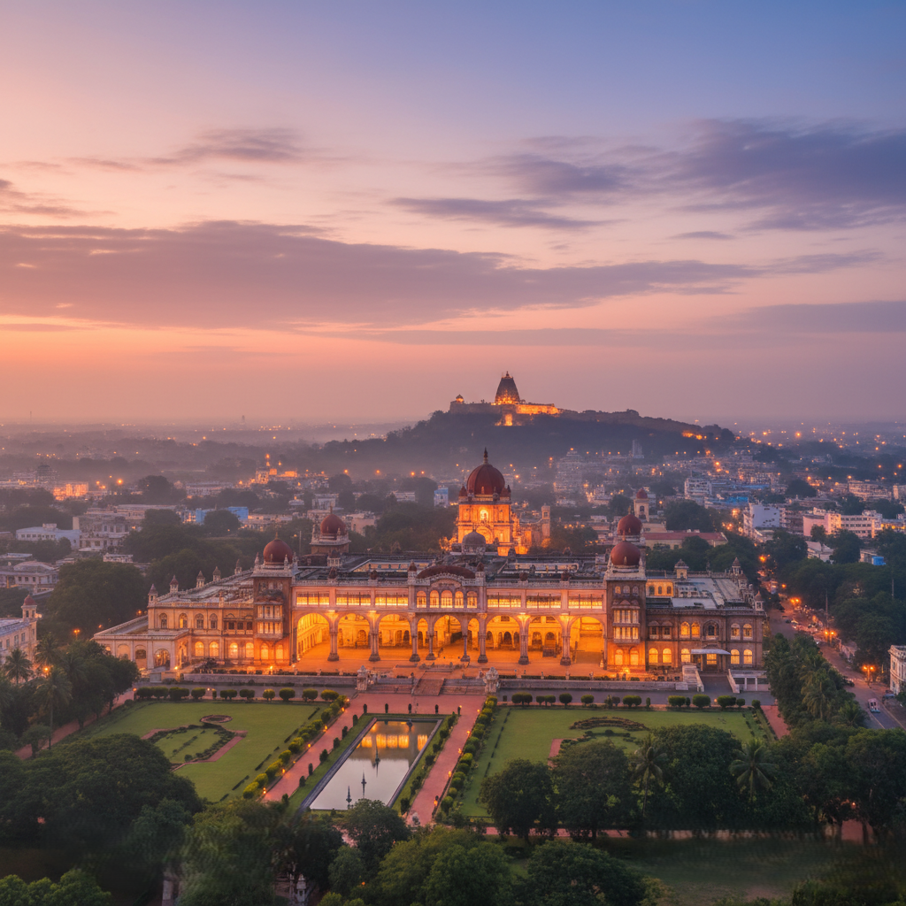The Mysore Palace, also known as Amba Vilas Palace, stands as an iconic symbol of architectural grandeur and historical significance in the city of Mysore, Karnataka, India. This opulent edifice served as the official residence and administrative hub of the Wadiyar dynasty, who governed the Kingdom of Mysore from 1399 to 1950. The current palace, a testament to resilience and rebirth, was commissioned after the old palace was destroyed by a fire in 1897 during a wedding. Designed by the English architect Henry Irwin, its construction was completed in 1912, though subsequent additions and renovations continued for several decades.The architectural style of the Mysore Palace is predominantly Indo-Saracenic, a fusion that masterfully incorporates elements from Hindu, Mughal, Rajput, and Gothic traditions. The palace is a stunning sight, constructed with grey granite and adorned with pink marble domes, creating a striking visual contrast. Its expansive complex includes a series of courtyards, gardens, and buildings, all meticulously designed. The main palace building boasts three stories, featuring intricately carved wooden doors, mosaic floors.